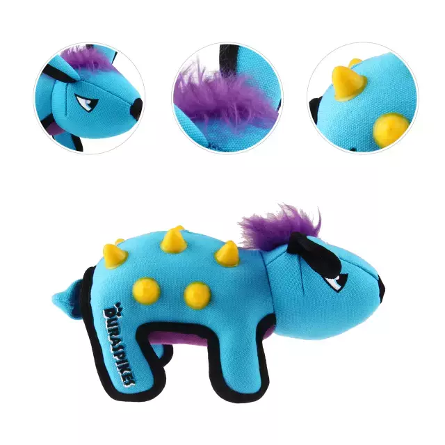 Juguete ultra resistente para perros, fabricado con construcción de múltiples capas que incluye cinta industrial, picos de TPR, lona fuerte, forro de nailon y relleno. Sus picos de TPR masajean las encías y ayudan a limpiar los dientes durante la masticación, promoviendo la salud bucal. Disponible en divertidas formas de animales con aspecto desafiante para motivar el juego. Es lavable a máquina para una fácil limpieza y viene en distintos tamaños, adaptándose a perros grandes y pequeños.